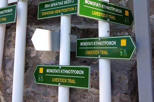 - Στρίβουμε δεξιά και ακολουθούμε το Εθνικό Μονοπάτι 11 μέχρι τη θέση Τσιούμος.
